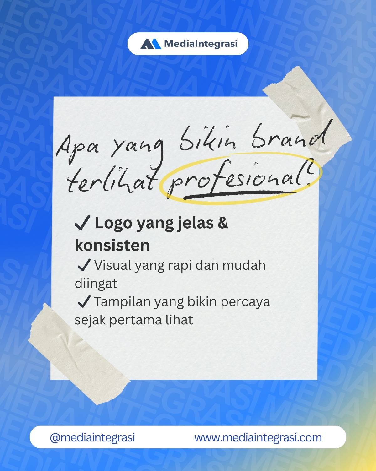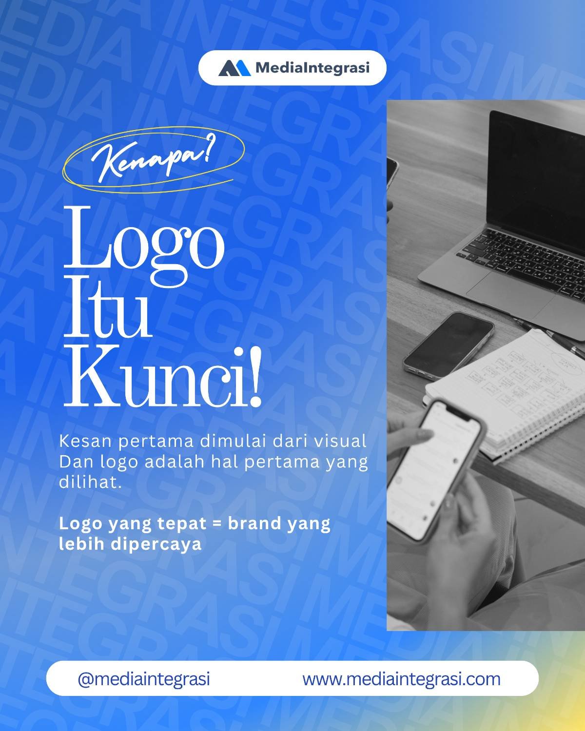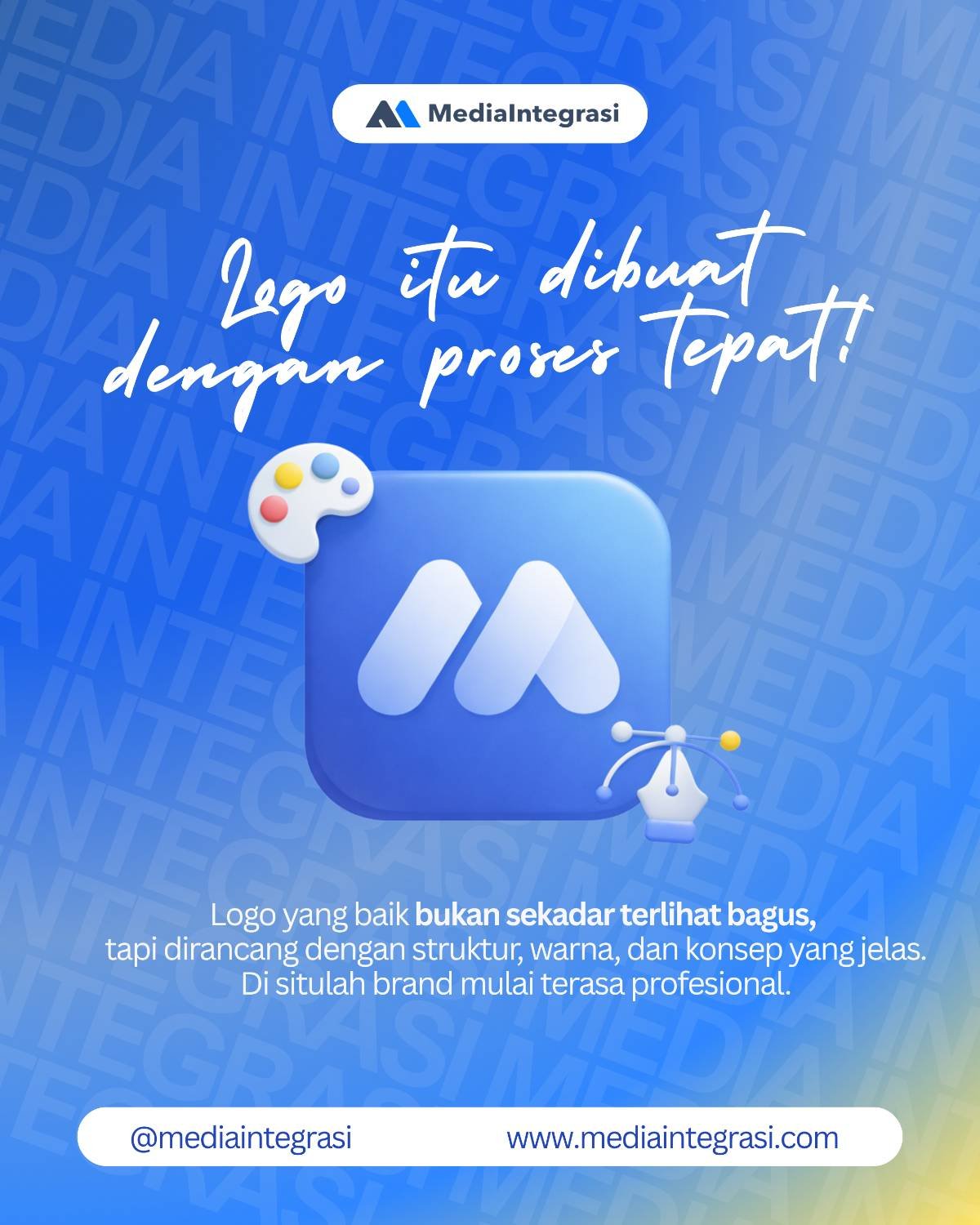 Saatnya brand kamu tampil lebih profesional dengan logo yang tepat. MediaIntegrasi siap membantu kamu mulai dari proses hingga hasil akhir yang siap digunakan.